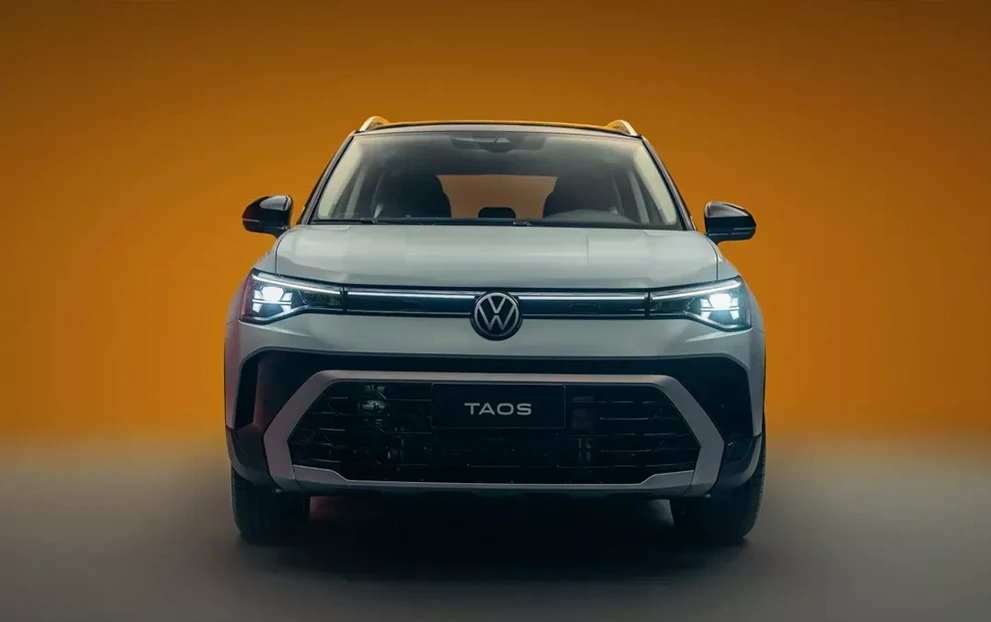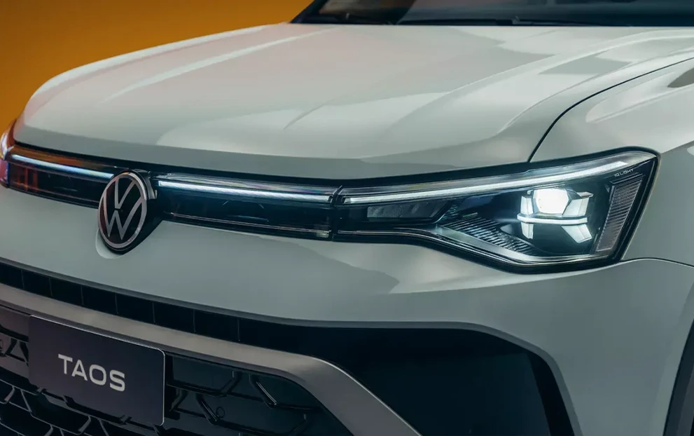 A iluminação do Novo Taos evoluiu para criar uma personalidade própria durante a noite. Os faróis full LED IQ. Light entregam um feixe mais amplo e preciso, enquanto a grade iluminada une os elementos frontais em uma linha contínua que traz modernidade ao visual.